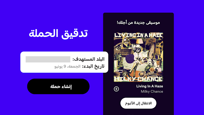 هذه الاقتراحات التي تظهر داخل التطبيق هي أفضل طريقة لجذب المستمعين المستهدفين إلى التركيز على إصدارك الجديد على Spotify. اعرَف آلية عمل الأداة وسر نجاحها وكيفية حجز حملاتك الخاصة.