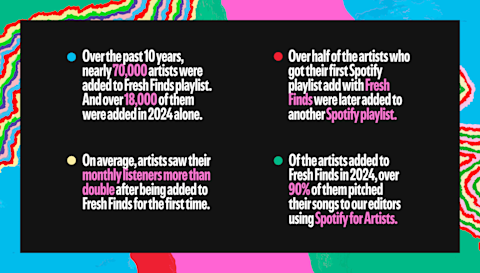 Join us in celebrating a decade of Fresh Finds. Hit play on the anniversary playlist and explore more stories from artists at every stage of their journey on the Spotify for Artists Instagram and TikTok.