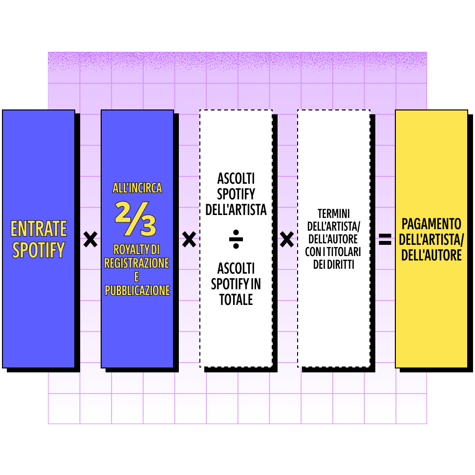 Spotify paga circa due terzi delle sue entrate ai titolari dei diritti di registrazione e pubblicazione per conto degli artisti e degli autori che rappresentano.