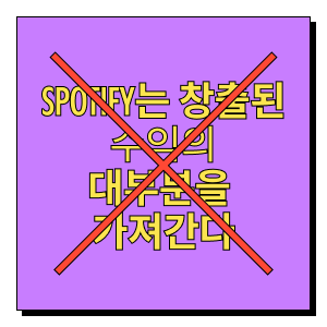 Spotify는 아티스트 및 작곡가/작사가를 대신하여 이들을 대표하는 레코딩 및 퍼블리싱 권리 보유자에게 수익의 약 3분의 2를 지급합니다.