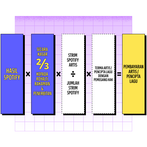 Spotify membayar kira-kira dua pertiga hasilnya kepada pemegang hak rakaman dan penerbitan bagi pihak artis dan pencipta lagu yang diwakili oleh mereka.