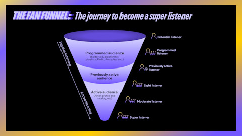 Cada fã interage de um jeito, e vimos que conseguir superouvintes demanda bastante interação. Encaramos essa jornada como um funil de fãs, uma forma de entender como diferentes tipos de ouvintes se tornam fãs leais: