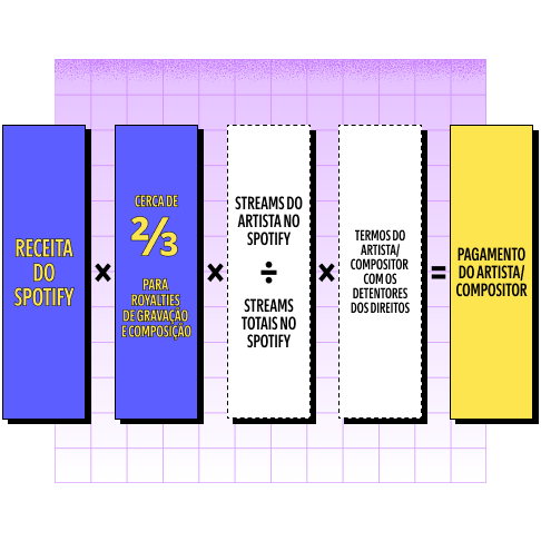 O Spotify paga cerca de dois terços da receita aos detentores dos direitos de gravação e composição em nome dos artistas e compositores que eles representam.