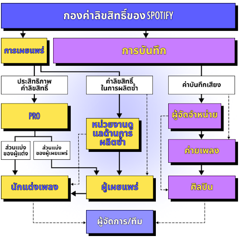 Spotify จ่ายเงินรายได้ประมาณ 2 ใน 3 ให้กับผู้ถือสิทธิ์การบันทึกเสียงและการเผยแพร่ในนามของศิลปินและนักแต่งเพลงที่เป็นตัวแทน