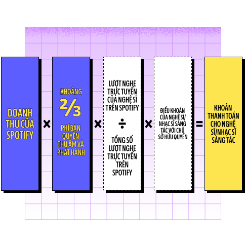 Spotify thay mặt cho các nghệ sĩ và nhạc sĩ sáng tác mà họ đại diện trả khoảng 2/3 doanh thu của mình cho chủ sở hữu quyền thu âm và phát hành.